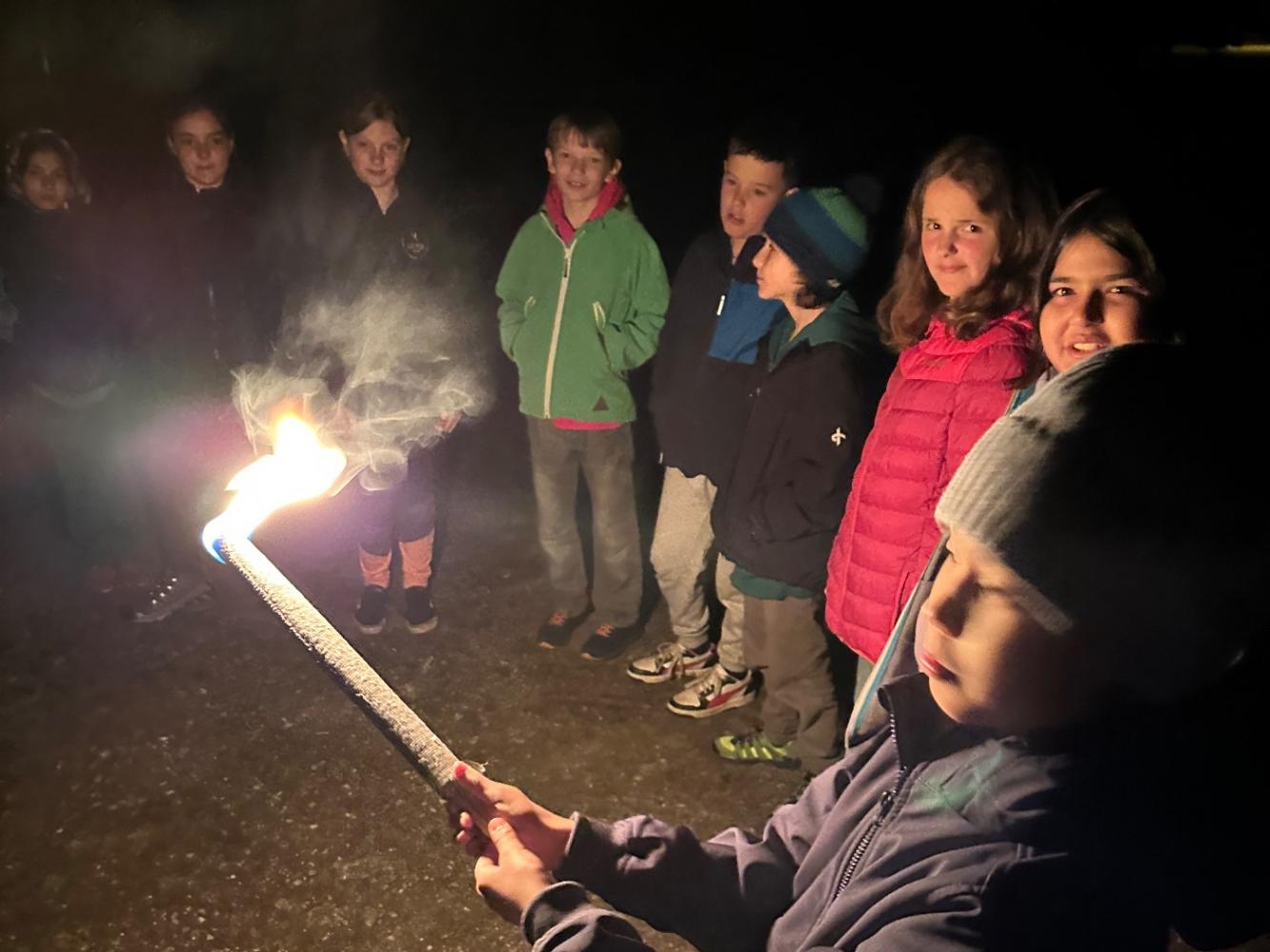 Am ersten Tag war die Anreise mit anschließender Wanderung zum Obernberger See, dort wurde gejausnet und anschließend mit verbundenen Augen ein Fühlweg gegangen. Danach schulten wir unser Auge und wir müssten versteckte Tiere im Wald entdecken. Damit war das Programm aber noch nicht vorbei, nach dem Abendessen ging es zu einer Nachtwanderung und richtigen Mutprobe. Im dunklen Wald mussten wir von Licht zu Licht ganz alleine gehen, nur mit einem Mutstein! Abgerundet wurde der Abend mit einer Fackel, die all unsere Ängste und Wünsche in die Luft fliegen ließ.