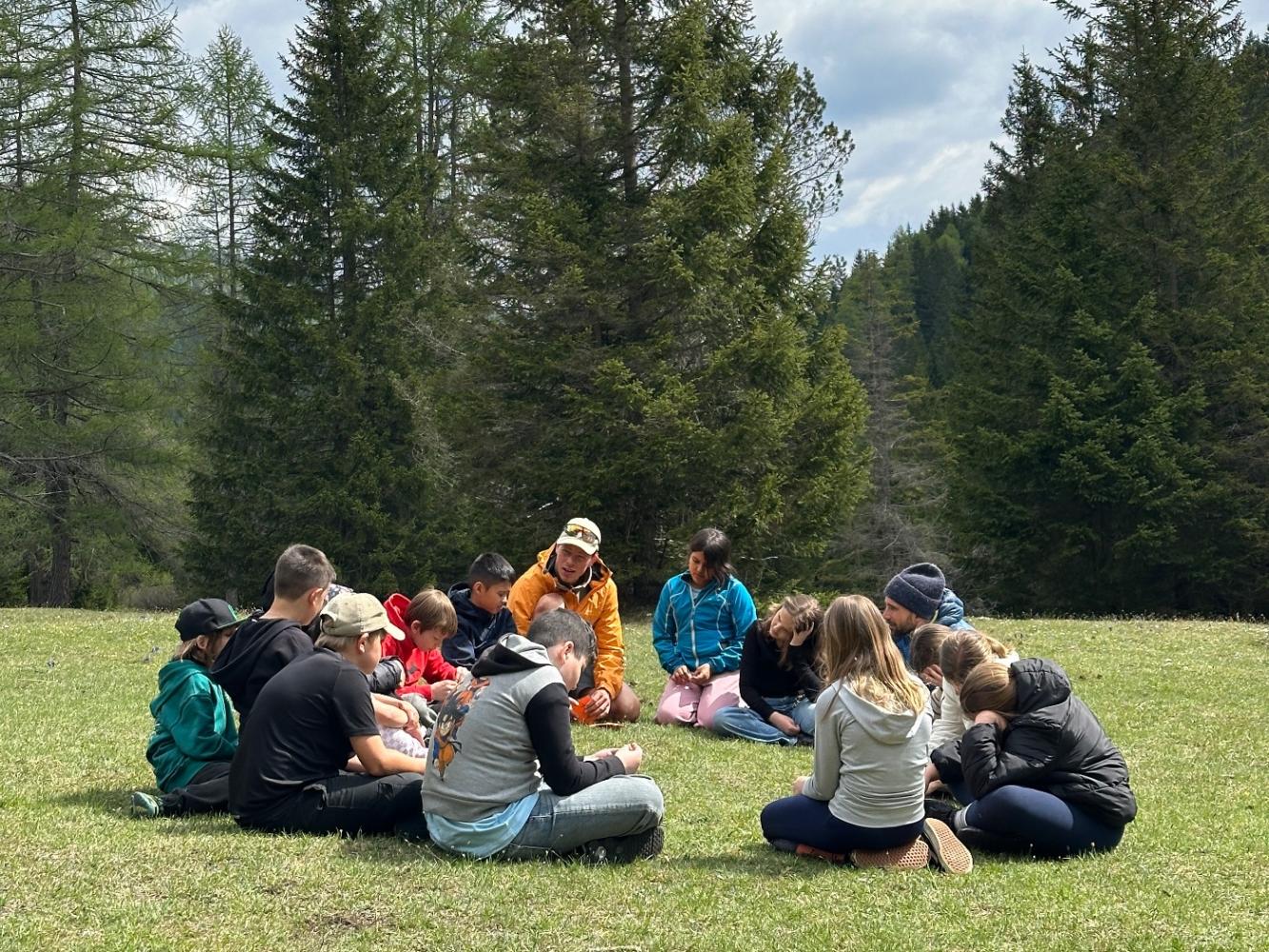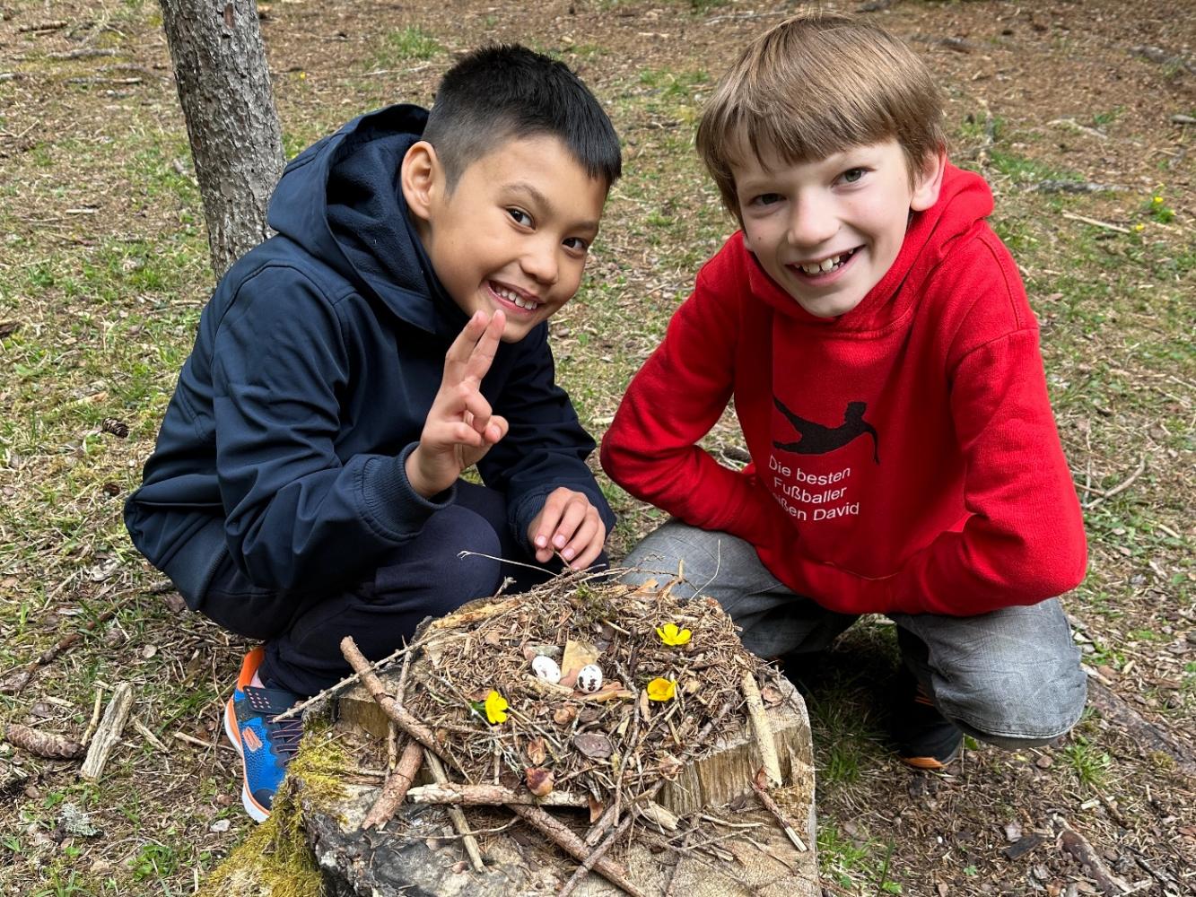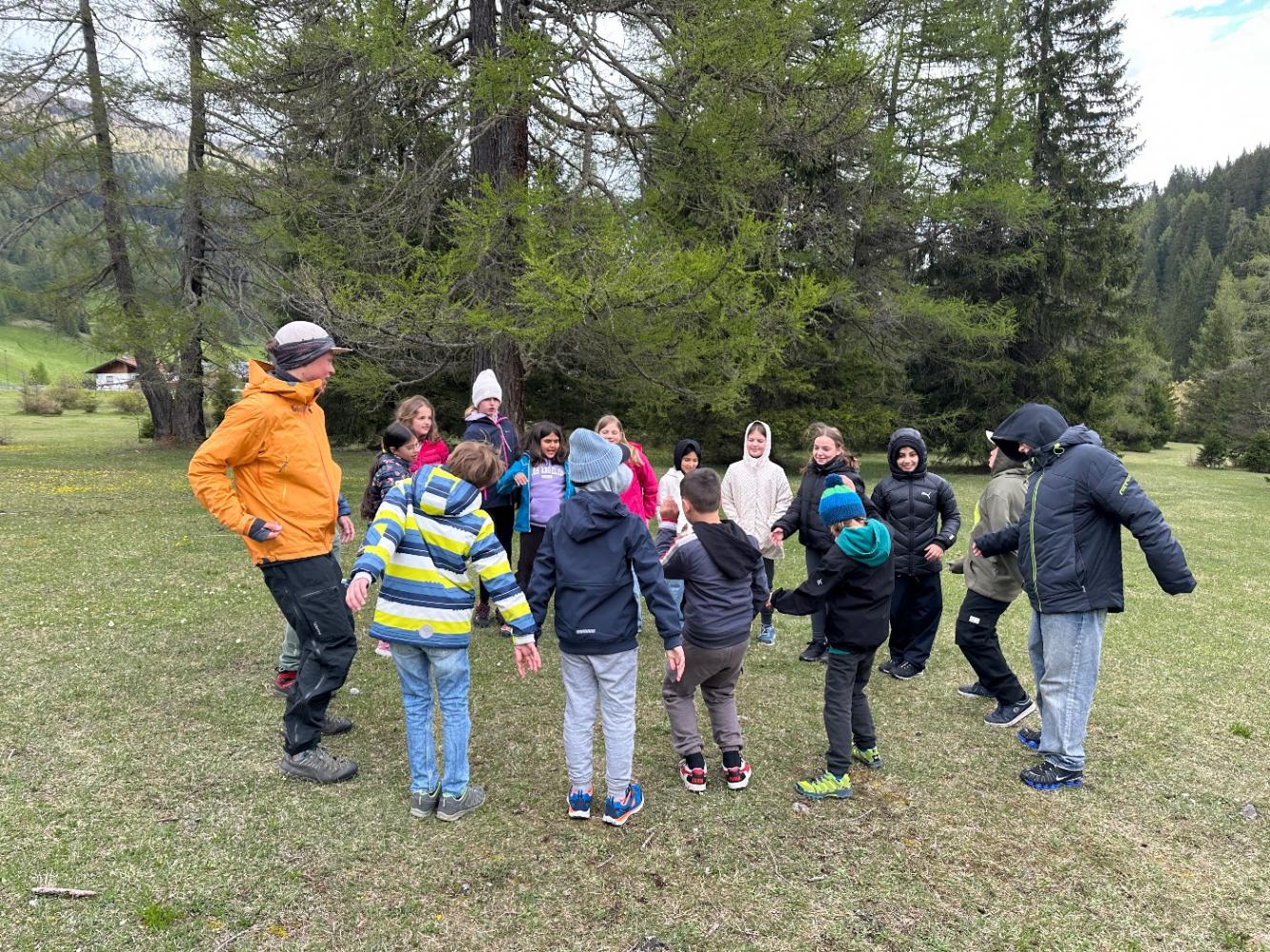 Am zweiten Tag gingen wir wieder zur Lärchenwiese, unser täglicher Ausgangspunkt. Dort spielten wir verschiedene Spiele und in der Nähe bauten wir Nester für Vögel. Anschließend haben wir am Wasser nach verschiedensten Wassertieren geforscht. Abends wurde gemütlich in der Unterkunft gespielt.