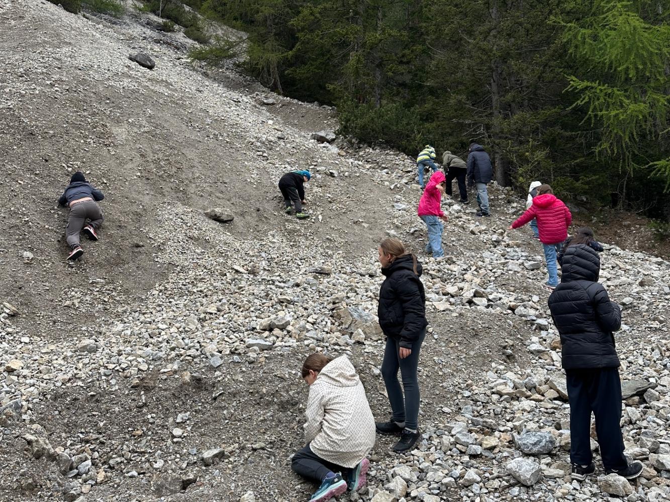 Am dritten Tag wärmten wir uns auf der Lärchenwiese mit verschiedensten Übungen auf, da es an diesem Tag etwas kalt war. Anschließend wanderten wir zu einem Geröllfeld und konnten dort richtige Kristalle finden. Danach suchten wir im Wald verschiedenste Waldtiere. Der Spaß durfte natürlich nicht zu kurz kommen und immer wieder wurden dazwischen Spiele gespielt.