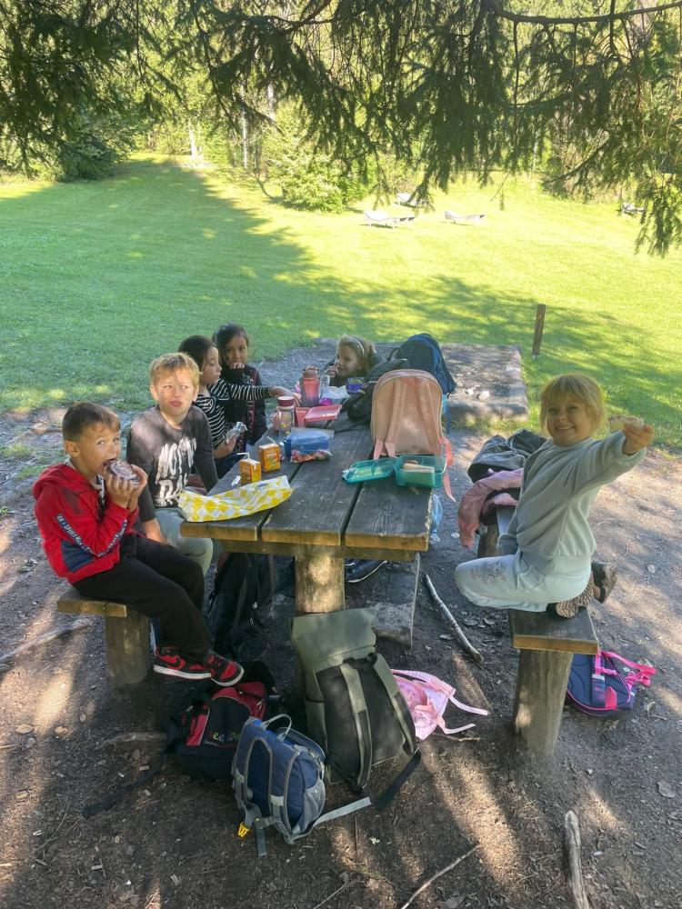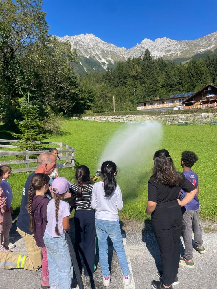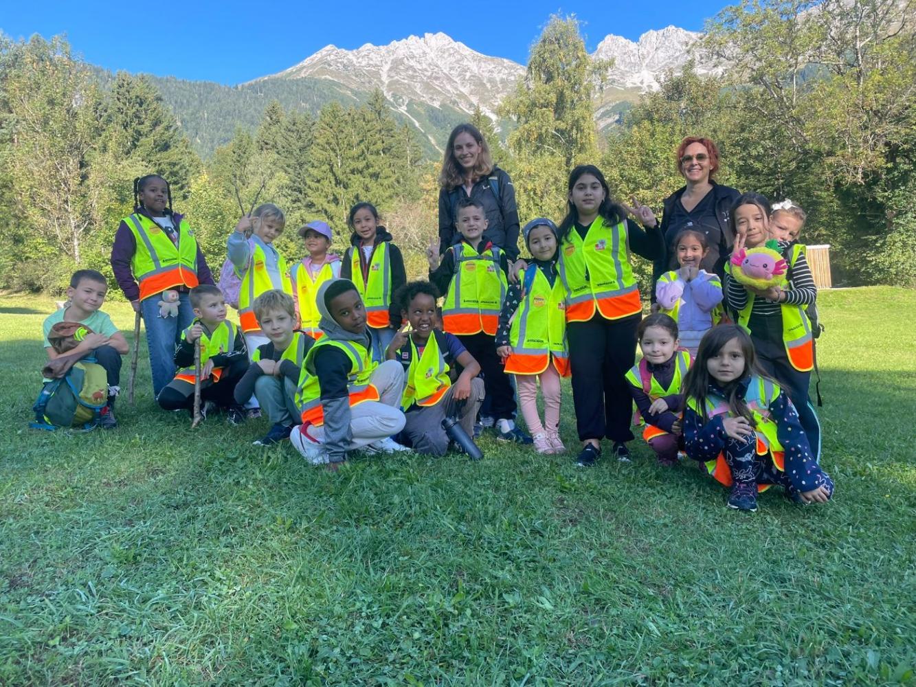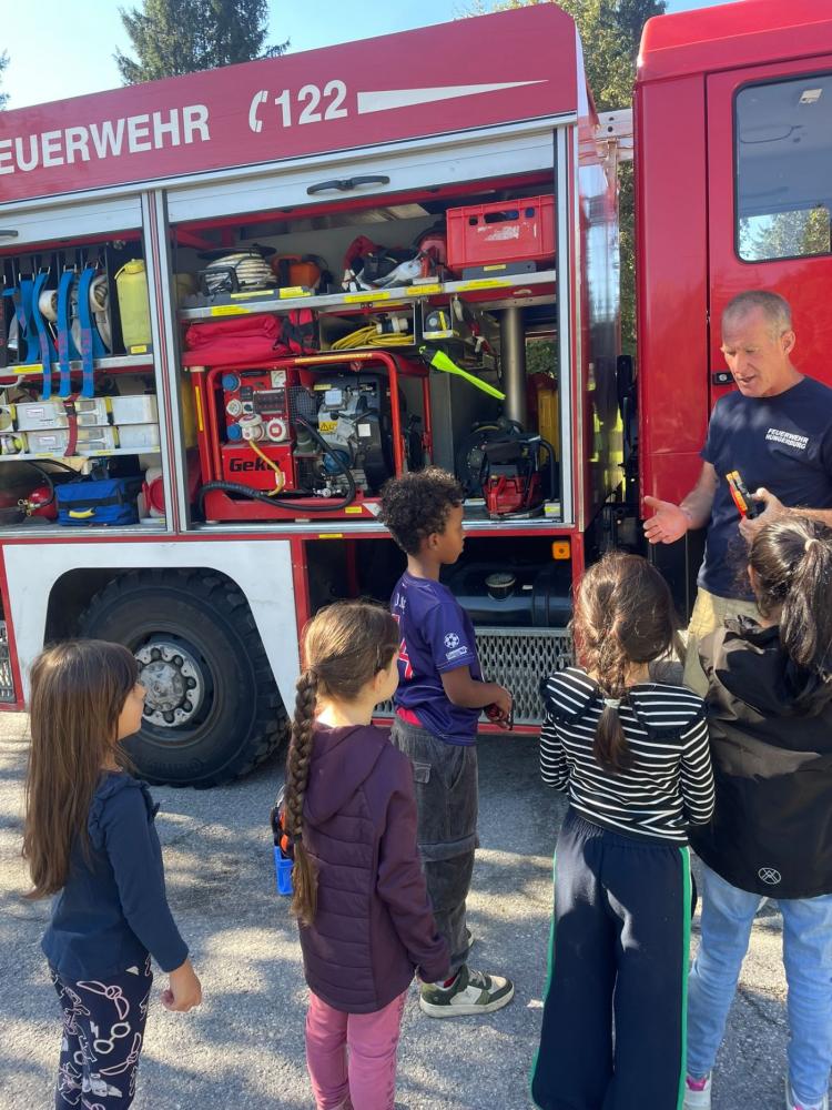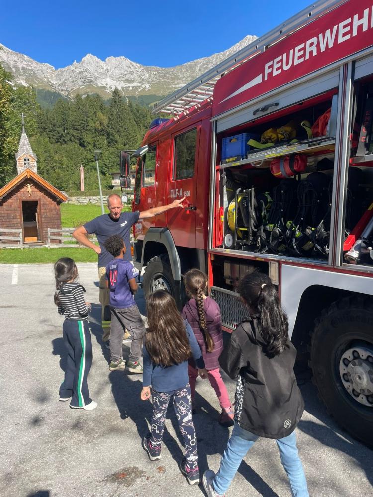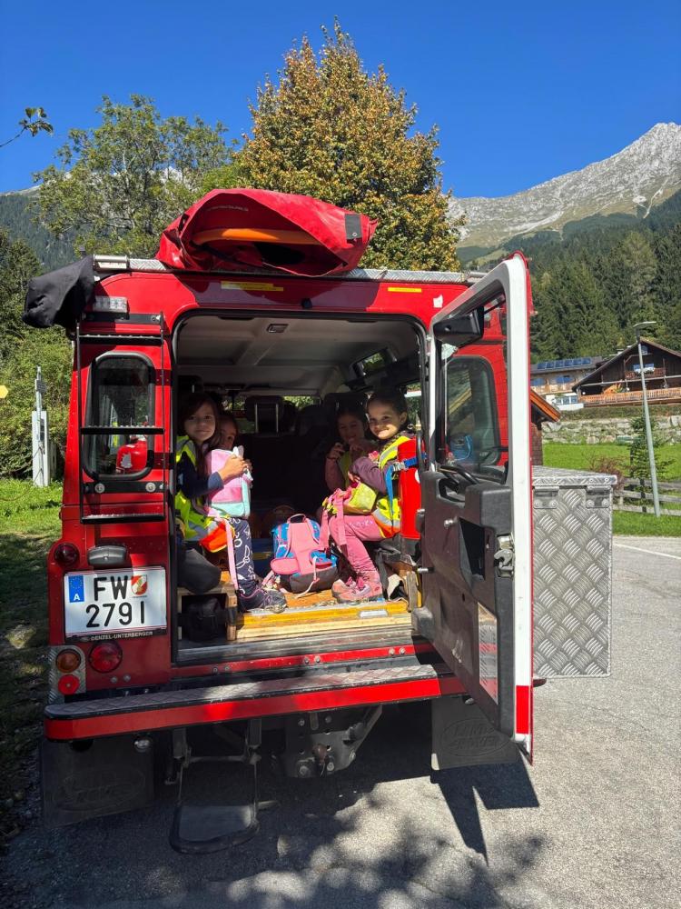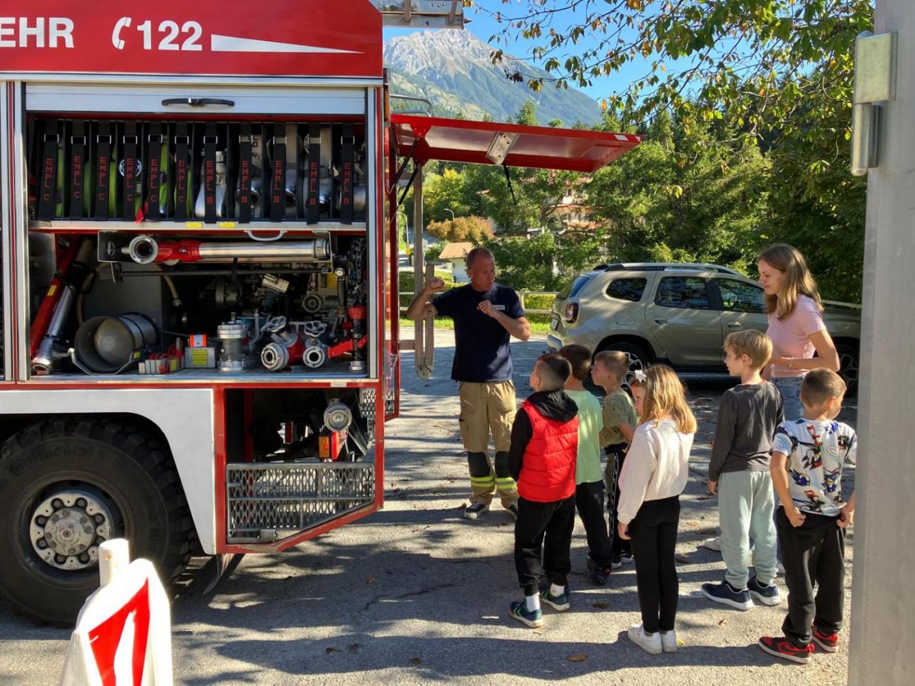 Mit dem Bus fuhren wir bis zur Endstation Nordkette und wanderten anschließend durch den Wald zum Spielplatz Gramartboden. Auf unserem Weg entdeckten wir viele Tiere - unter anderem Würmer, Käfer, einen Hund und sogar ein Reh! Am Spielplatz angekommen wurden wir schließlich von der Feuerwehr Hungerburg überrascht. Wir durften uns das Feuerwehrauto ganz genau anschauen und sogar mit dem Schlauch Wasser auf die Wiese spritzen. Das Highlight war die kurze Fahrt mit dem Feuerwehrauto! Vielen Dank an die Feuerwehr Hungerburg!