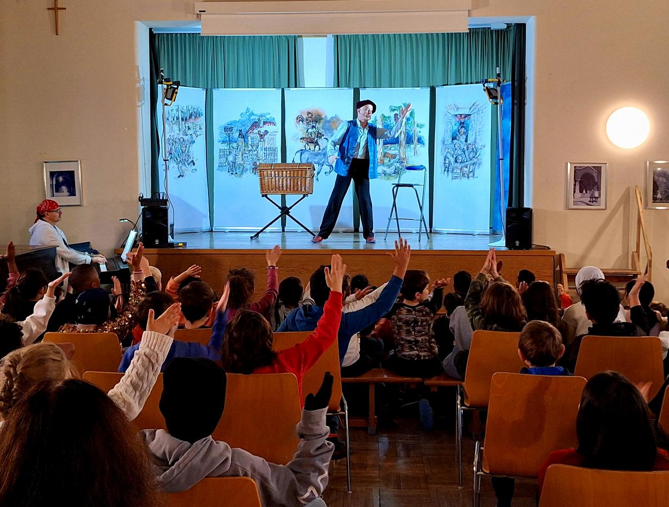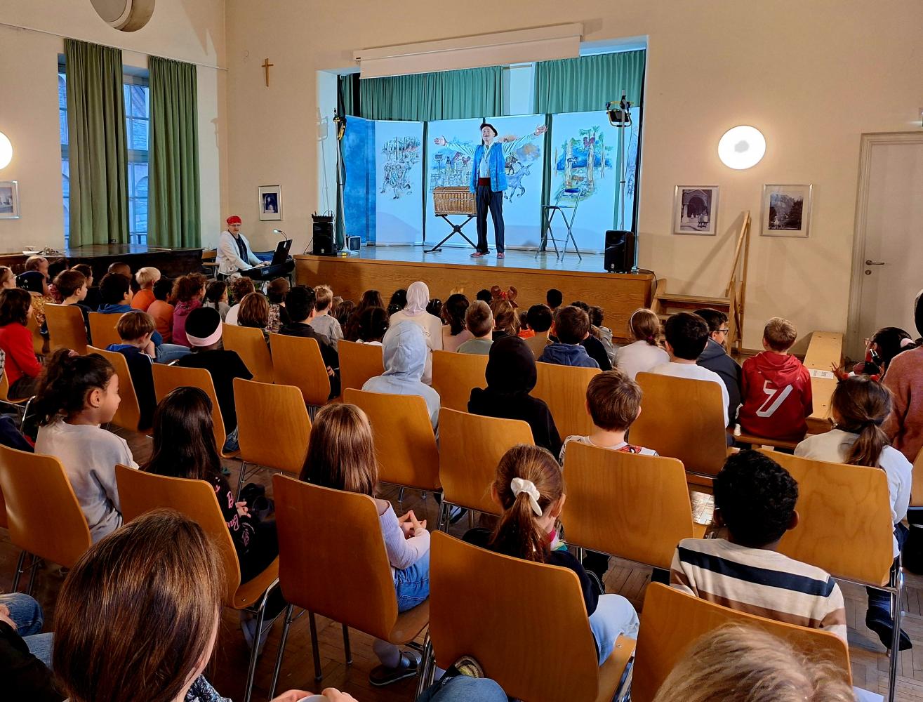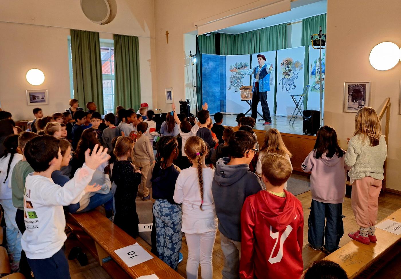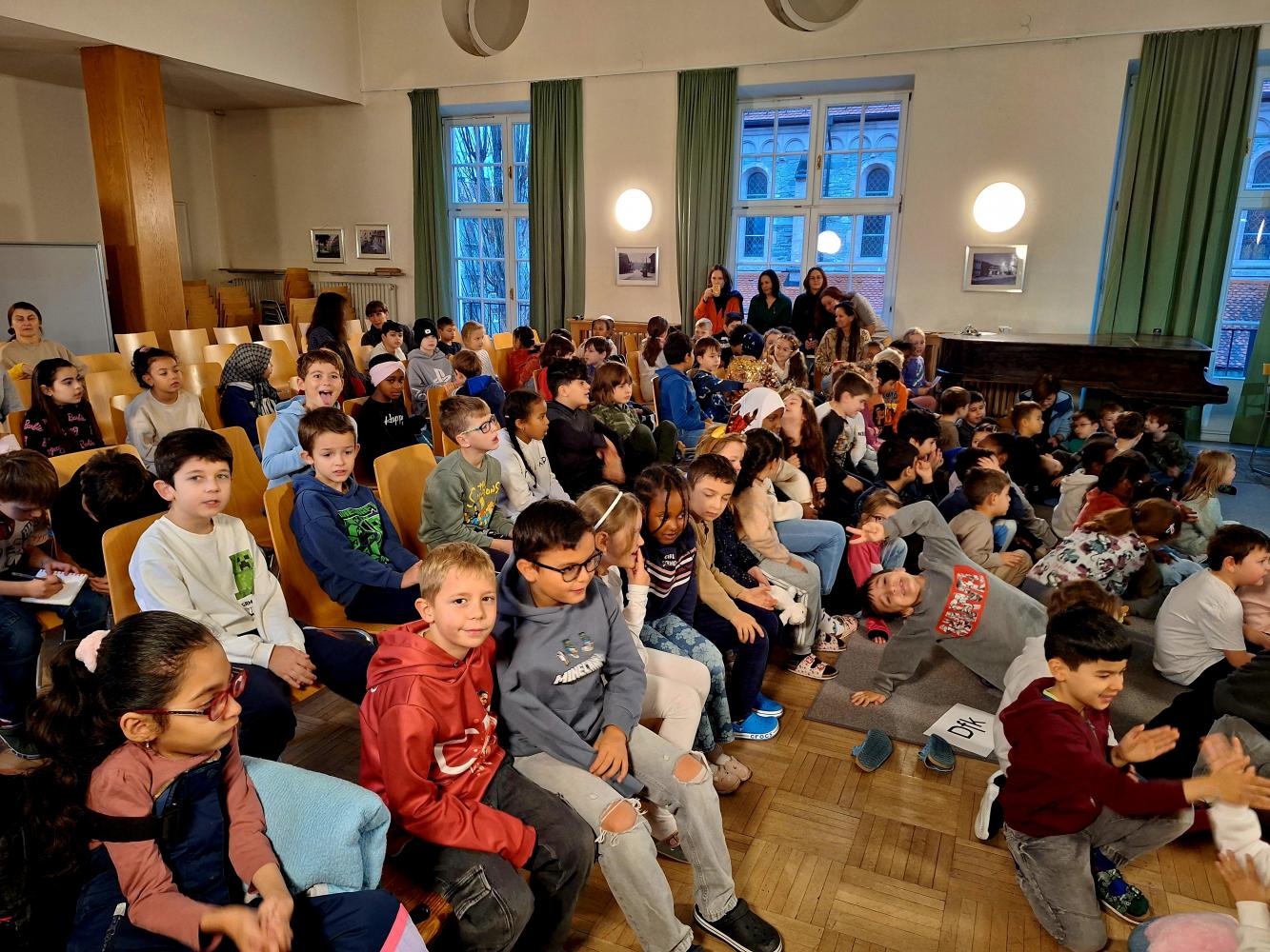 Gernot Kranner versteht es wirklich, auf wunderbare Weise Kinder zu faszinieren und auf spannende Abenteuerreisen ins Land der Fantasie mitzunehmen. Großartige Unterhaltung, tolle Stimmung und begeistertes Mitsingen, Mitklatschen und Mitmachen aller Kinder der VOS, Dfk, 1a,1b, 2a und 2b. Ein sehr gelungener musikalischer Vormittag für unsere Jüngeren zum Auftakt in die Vorweihnachtszeit!