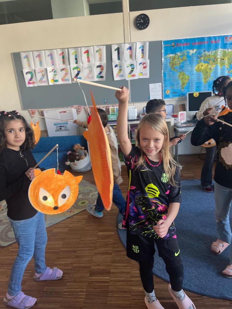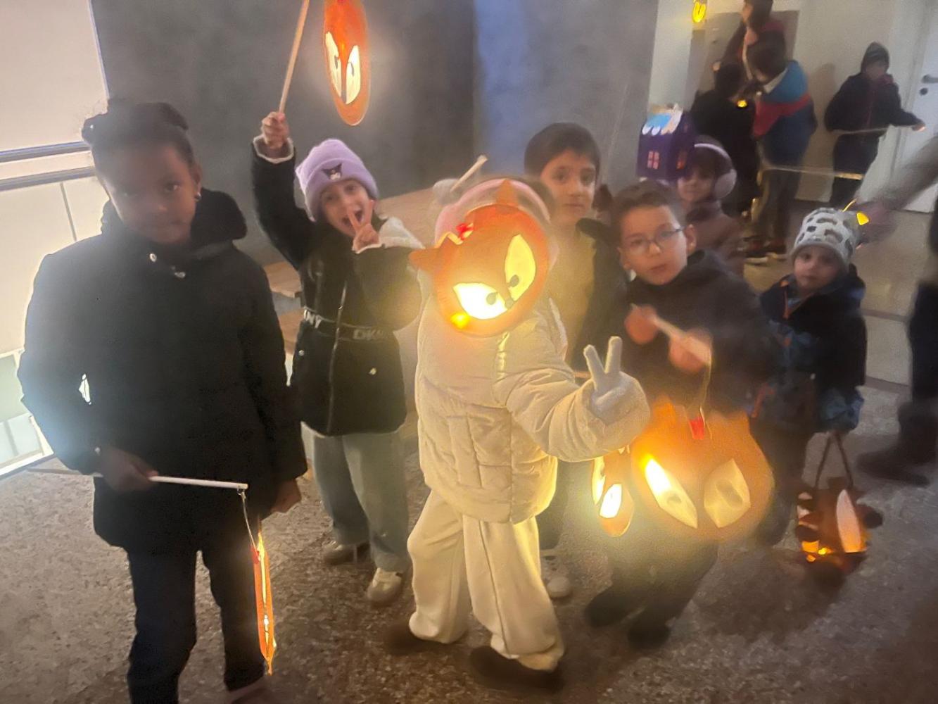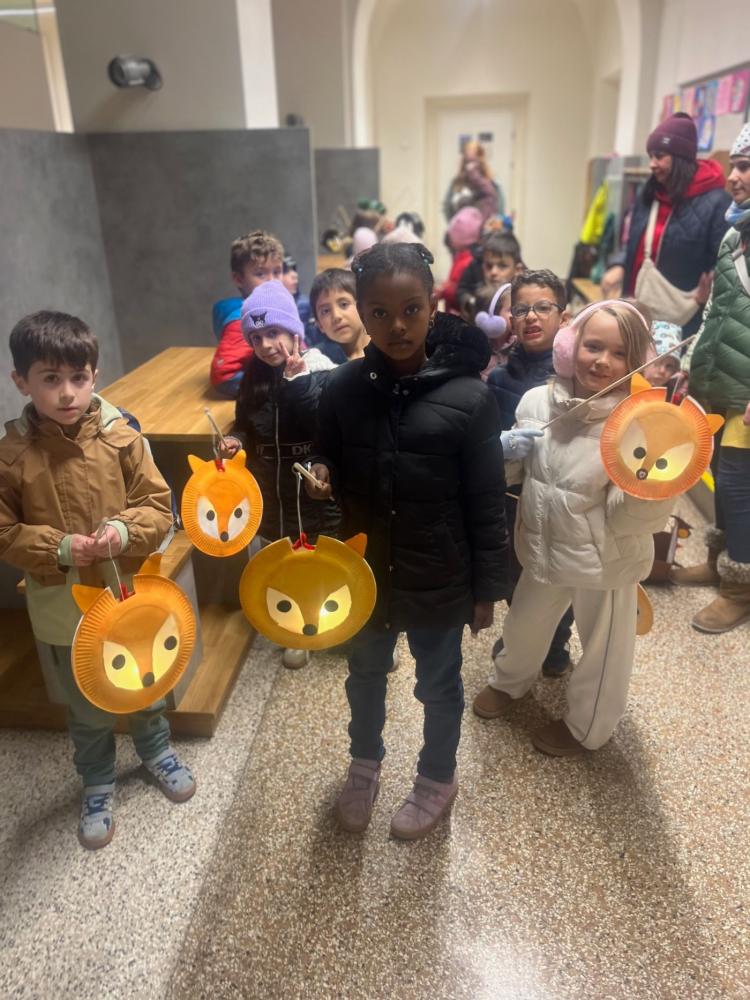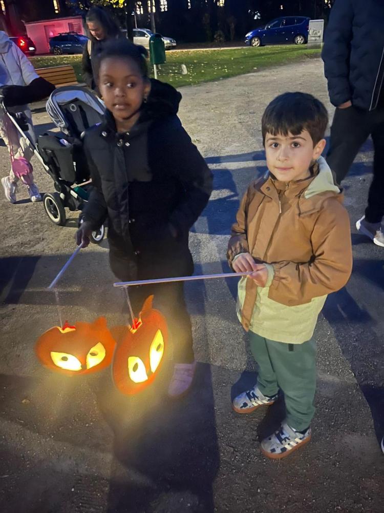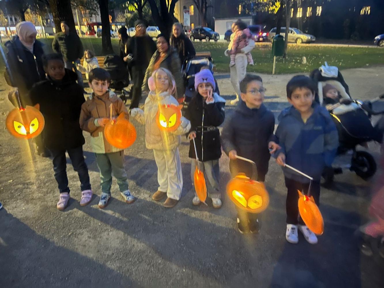 Am 12. November trafen sich die Deutsch Förderklasse, die Vorschule und die beiden ersten Klassen zu einem gemeinsamen Lichterfest. Wir zogen mit unseren selbstgebastelten Laternen durch den Park und durften Eltern und Geschwistern unsere Lieder vorsingen. Im Anschluss wärmten wir uns mit heißem Tee und Punsch im Schulhof.